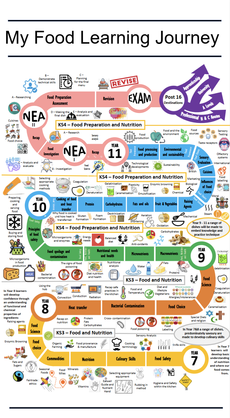 Preparation of food is an essential life skill and learning about how food is grown and produced, what factors influence our food choices, and how different life stages can affect our nutritional requirements are examples of the wider food knowledge they will gain.